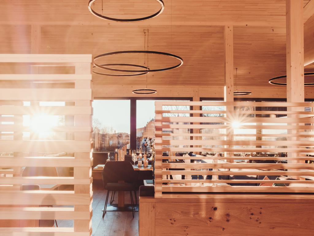 Viel mehr Platz für unsere Gäste ein neuer Küchen- und Buffetbereich ideal für unsere kulinarischen Themenabende sowie eine große Panorama-Verglasung mit einem 180-Weitblick hinaus auf die beschauliche Allgäuer Bergwelt.